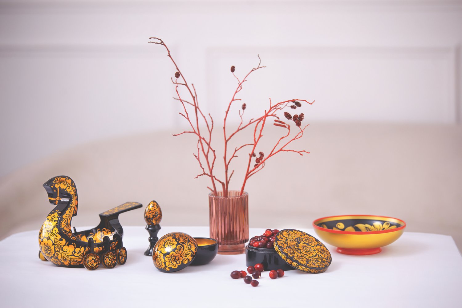 Имя нижегородского села давно стало нарицательным: хохломой называют и традиционные народные промыслы вообще, и ярковыраженные русские мотивы в любой художественной сфере. Но сама Хохлома (ударение в названии, кстати, ставится на первый слог) имеет к этому лишь косвенное отношение – там была большая ярмарка, где торговали в том числе и изделиями с узнаваемыми золотыми узорами. Создавали же их в многочисленных сёлах Семёновского уезда и соседней Скоробогатовской волости.