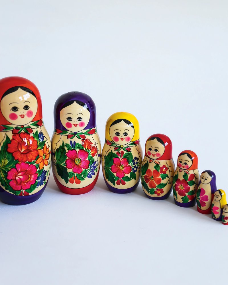 Семёнов славится как один из центров хохломской росписи, но знаменитые местные матрёшки созданы в совсем другой стилистике. На их платках и фартуках распускаются большие цветы, а щёчки всегда горят румянцем. Изготавливать такие игрушки начали в XX веке: токарь из соседнего села Мериново увидел на Нижегородской ярмарке сергиево-посадскую матрёшку и решил сделать свою, мериновскую. Диковинка всем понравилась, и опыт переняли многие местные мастера. В 1932 году в Семёнове основали художественную артель по производству игрушек, где взяли за основу мериновскую матрёшку и разработали новые варианты. Наряды куколок сделали более яркими, а их количество увеличили до 15 и даже 20 фигурок.