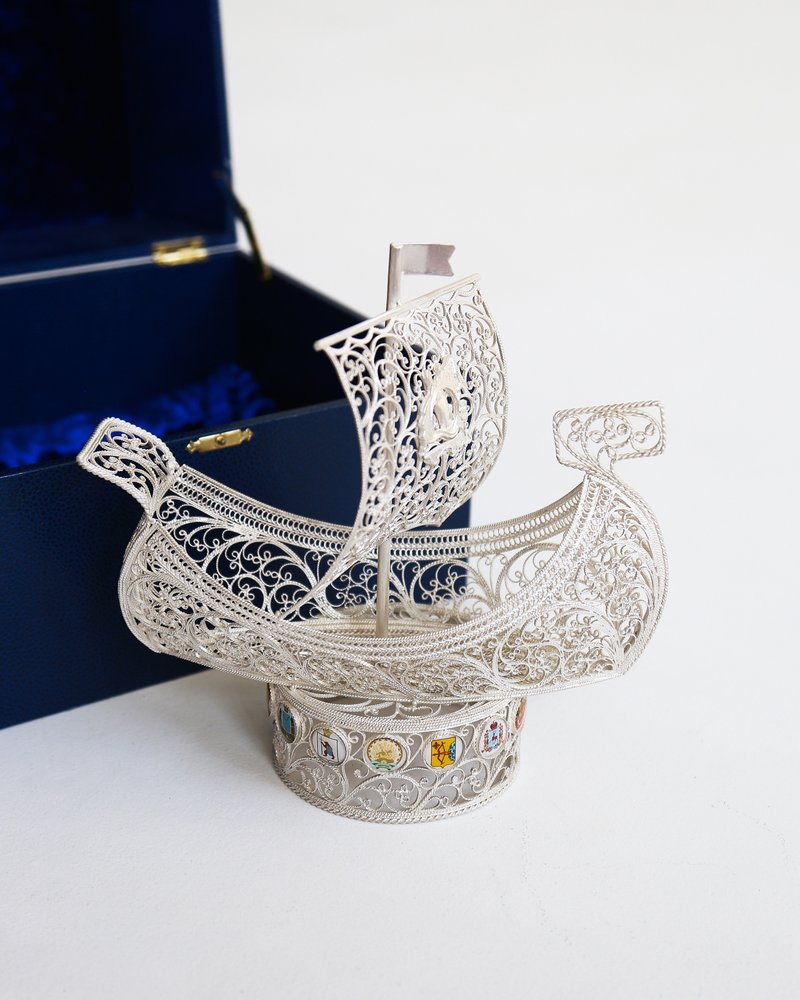 Филигрань, или скань, – искусство создания ажурных узоров из металла. Из тонкой проволочки скручивают кольца и петли и спаивают, собирая сложные орнаменты и изображения. Древняя техника требует такой точности, что особенно трудоёмкую и кропотливую работу называют «филигранной». На Руси скань была известна давно – филигранные изделия встречаются ещё в раскопках курганов IX века. В Нижегородской области центром промысла стало село Казаково в Вачском районе.