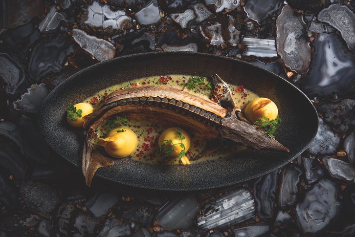 В качестве кульминации новогодней гастрономической программы Александр предлагает приготовить стерлядь, запечённую с картофелем и икорным соусом. Стерлядь нужно разделать, обязательно удалив визигу, сделать надрезы на коже вдоль спинных плавников и жаберных крышек и готовить в печи при 180 °С в течение 20 минут. После запекания удалить с рыбы кожу с обеих сторон и подать с картофельным пюре, украсив сливочно-винным соусом с замешенной в нём красной и осетровой икрой.