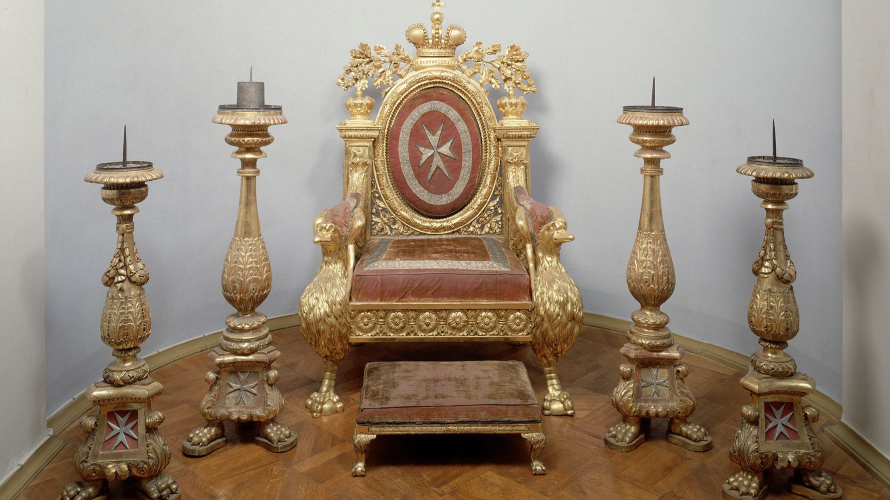 Оба экспоната относятся к XVIII веку; они имеют высокую историческую и культурную значимость. Трон магистра Мальтийского ордена входит в список лучших тронов Европы. Уникальна и подножная резная золоченая скамеечка на орлиных лапах, обитая малиновым бархатом.